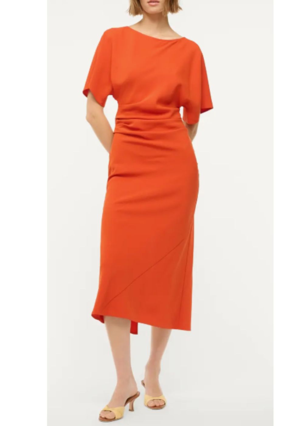 Lady in red! This fitted number from Staud is just what your wedding-guest wardrobe needs.