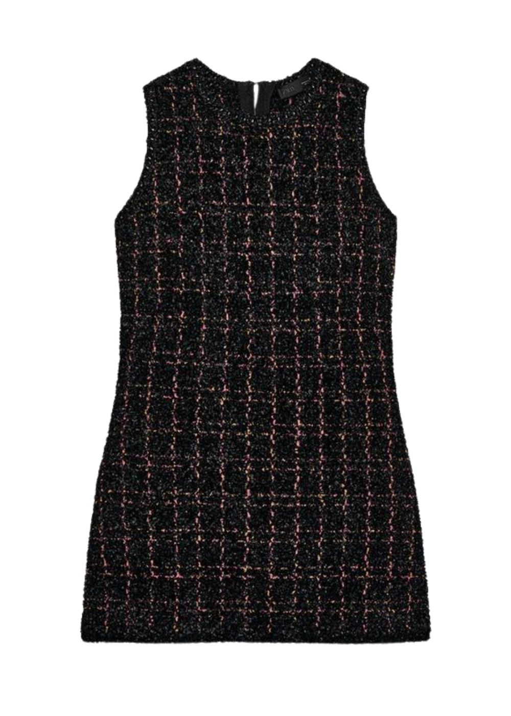 Zara’s crochet mini needs nothing more than a pair of metallic flat sandals to complete the look.