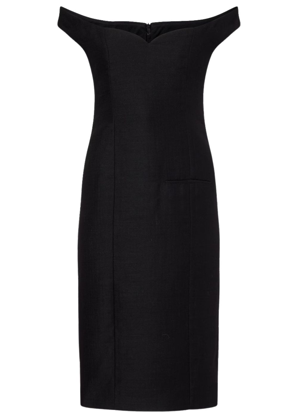 This midi defines minimalism with an architectural off-shoulder cut and tailored precision. Polished, pared-back, and perfectly modern.