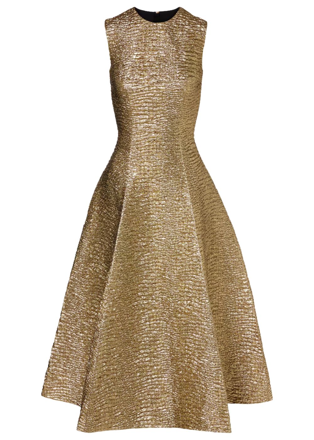 In my closet! This gold Emilia Wickstead midi is cut to timeless perfection. It’s the kind of dress that you’ll want to repeat and wear to parties for years to come!