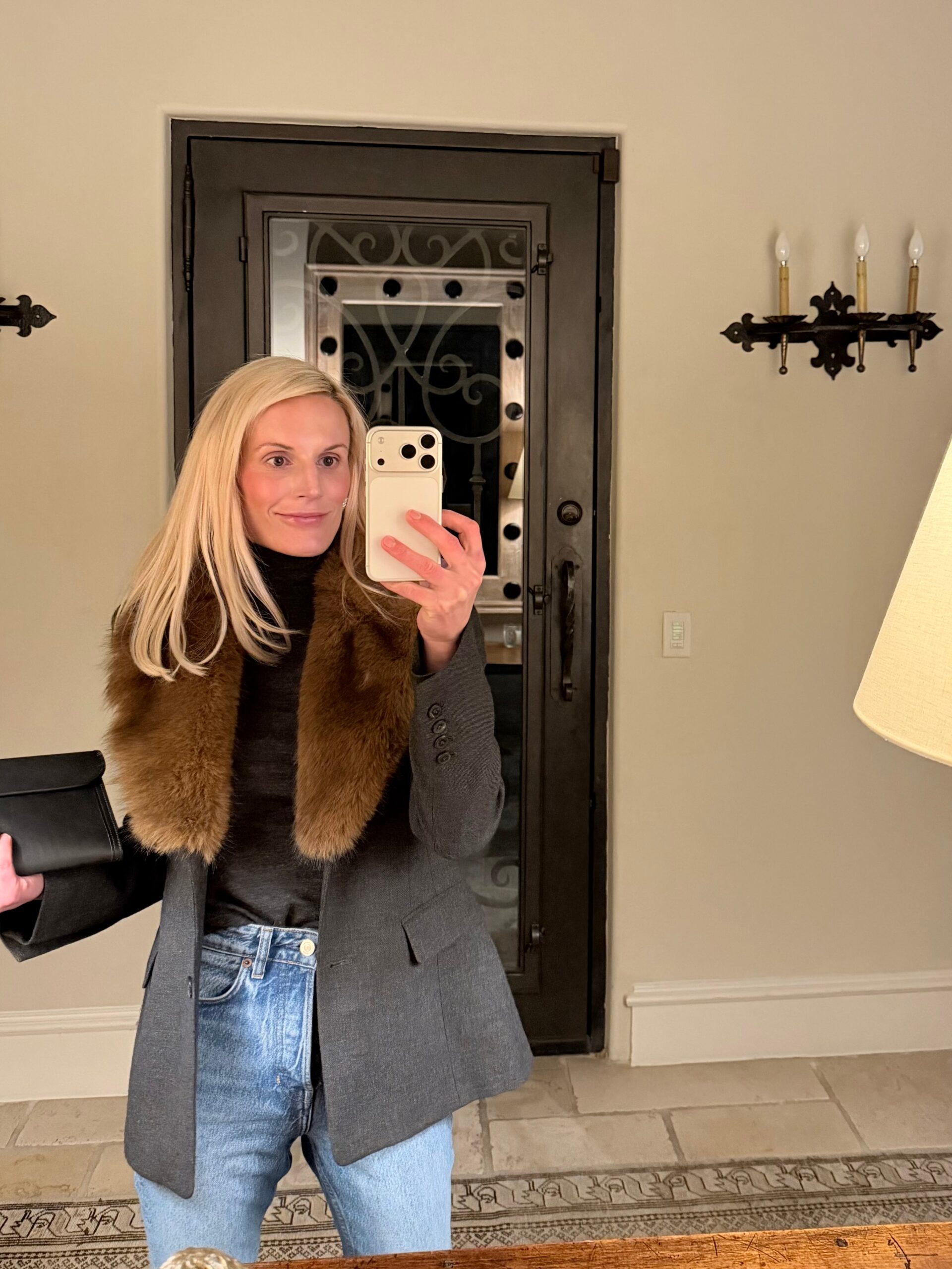 ZARA BLAZER • THEORY MOCK NECK SHIRT (SIMILAR HERE) REFORMATION CYNTHIA JEANS